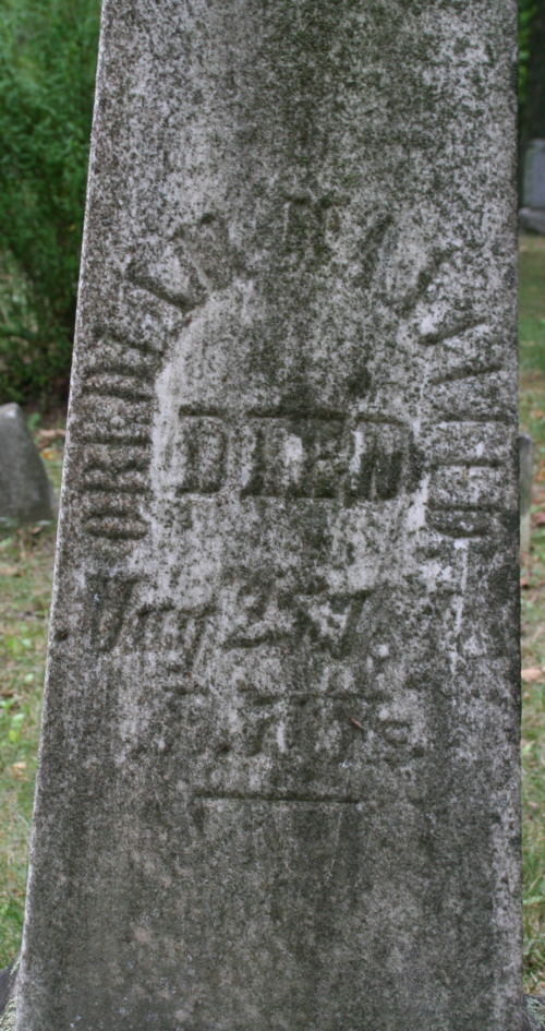 OBADIAH5 MAXFIELD (David4, Eliphalet3, Nathaniel2, John1) was born at New Hampshire or Vermont, say about 1778 a son of David Maxfield and his wife Judith Clough. He died at Lamont, Tallmadge Township, Ottawa County, Michigan on 25 May 1848.[1] He married probably before 1800 EUNICE ________,[2] who was more often called "Lucy." She was born about 1783 and died at Lamont on 4 October 1847.[3]