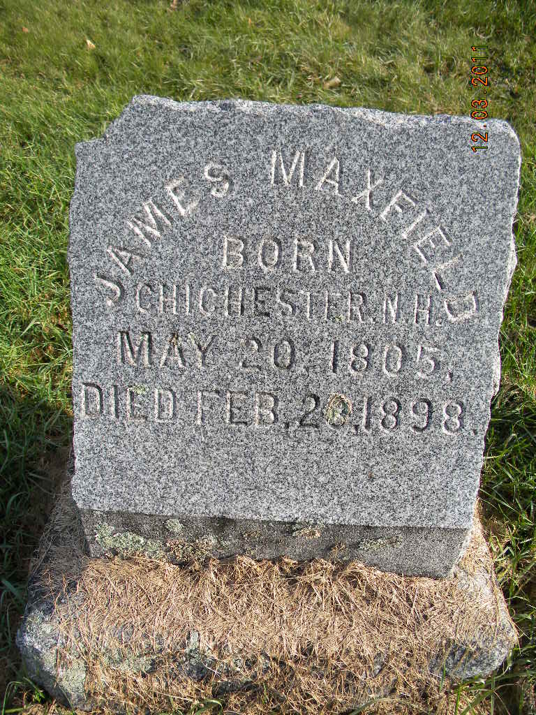 1New Hampshire, State of. Division of Vital Records, Concord, New Hampshire, New Hampshire: Births to 1901, Deaths and Marriages to 1937., No. 9515, Birth of James Maxfield, 1806; digital images, New England Historic Genealogical Society, American Ancestors (americanancestors.org : accessed 6 October 2016).