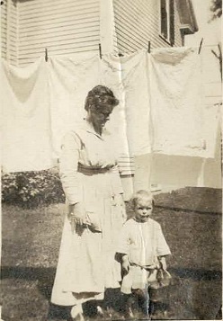 Thursday, if she was going to make bread, she whipped this dough up in a big thing on top of the dresser. I remember it was quite a treat to get up there and sit on the dresser and turn that crank around and make that dough. And then she'd put that dough over in back of the stove where there was a hot water boiler, for a day or so, and let it rise, and cover it with a rag. [NOTE: a dresser is a piece of furniture in the kitchen; some people call it a "counter."]