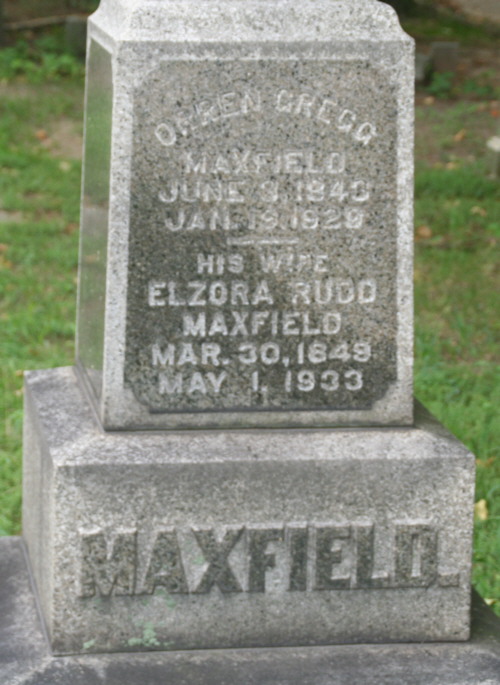 Name: Oren MaxfieldGregg Maxfield was living with his parents at Lamont, Tallmadge Township, at the time of the 1870 census, when he was described as a "boat engineer." He married ELZORA RUDD at Eastmanville, Ottawa County, on 11 June 1870 (MI M). Elzora was born at Pennsylvania on 30 March 1849 (Maplewood Cem).